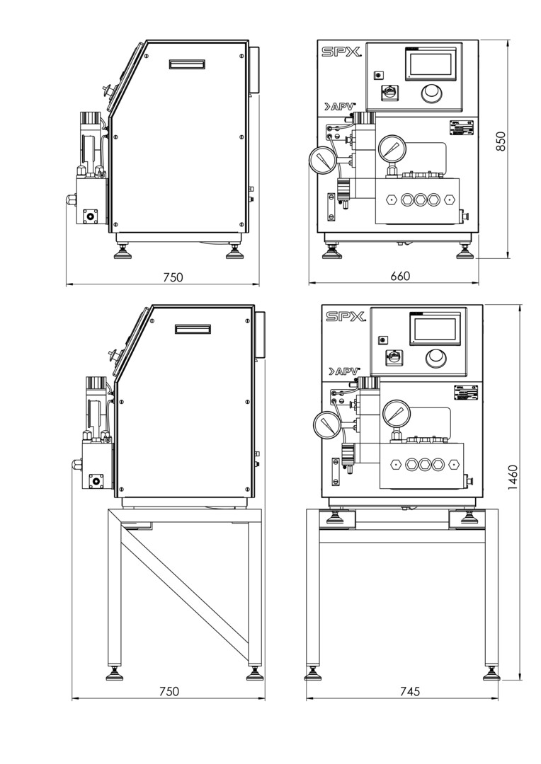 The APV Pilot 4T homogenizer provides all the functionality of a full-scale homogenizer but can apply them in pilot projects running at low flow rates. Like a full-scale homogenizer, the Pilot 4T homogenizes immiscible liquids into an emulsion, operating like a positive displacement pump with a valve. It forces fluids at high pressures through a small gap in that valve. This increases velocity and decreases pressure causing a turbulence/pressure differential that disrupts and disperses particles.