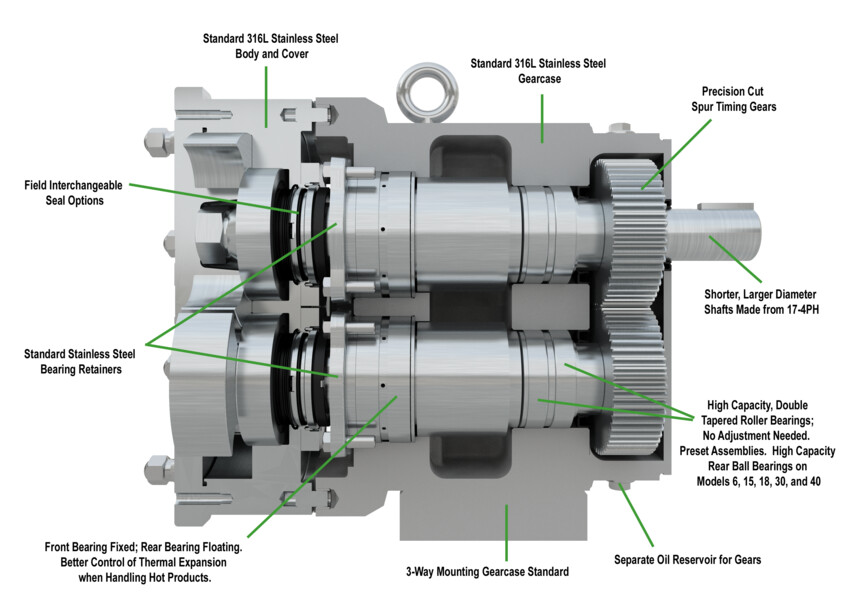 华克夏Cherry-Burrell设计没有轴承的流体被注入,没有滑动或滚动接触和rotor-to-rotor接触。这生产优质服务的生活即使在严重的操作条件。